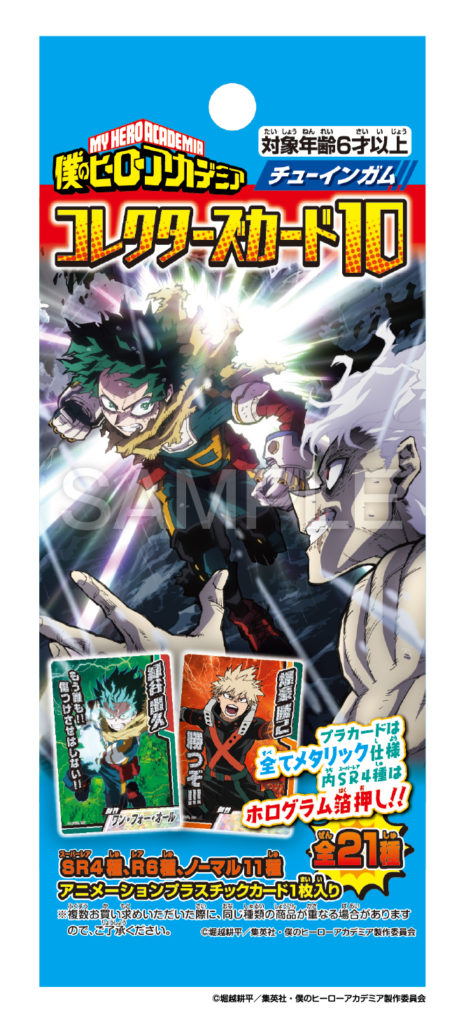 ♦TVアニメ『僕のヒーローアカデミア』のキャラクターをラインナップしたコレクションカード1枚と、チューインガム1枚入りです。